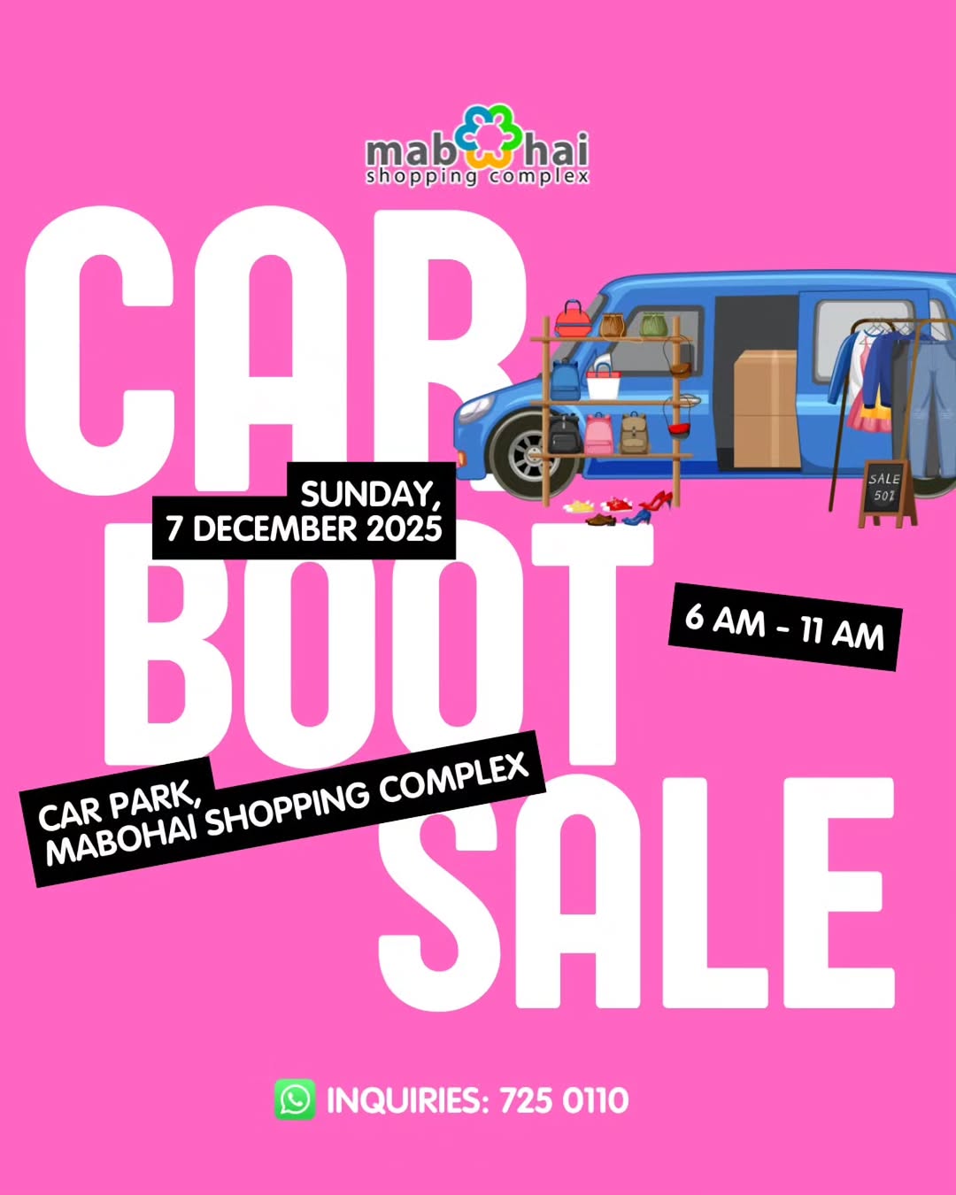 Discover preloved goodies, unique finds, and hidden gems at the Car Park, Mabohai Shopping Complex.