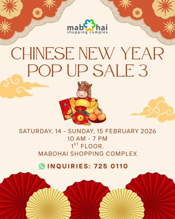 Celebrate the season of prosperity with joyful shopping, festive décor, and special treats. Explore a curated selection of local vendors and festive essentials at Mabohai Shopping Complex for our third and final edition of our Chinese New Year Pop Up Sale of the year!