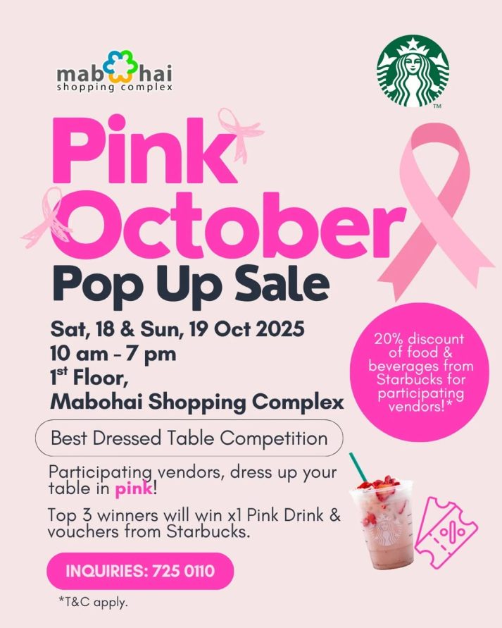 Join us this weekend as we go pink for a cause! Celebrate Pink October at Mabohai Shopping Complex and shop from amazing local vendors dressed in their best shades of pink!