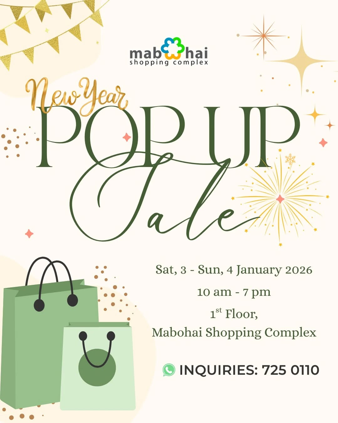 Be part of our New Year Pop Up Sale at Mabohai Shopping Complex – a great platform to showcase your products and engage with shoppers to kick off the first weekend of January!
