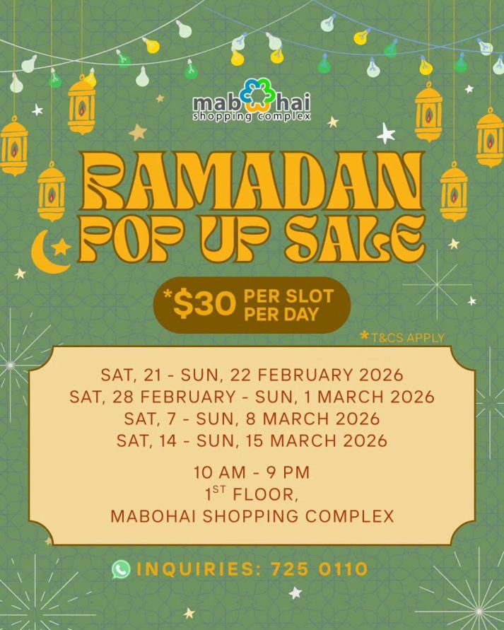 This is the perfect opportunity to showcase your products during the Ramadan season, from festive treats and Raya essentials to fashion, accessories, gifts & more. Connect with shoppers and grow your brand in a vibrant weekend atmosphere at Mabohai Shopping Complex for our Ramadan Pop Up Sale!